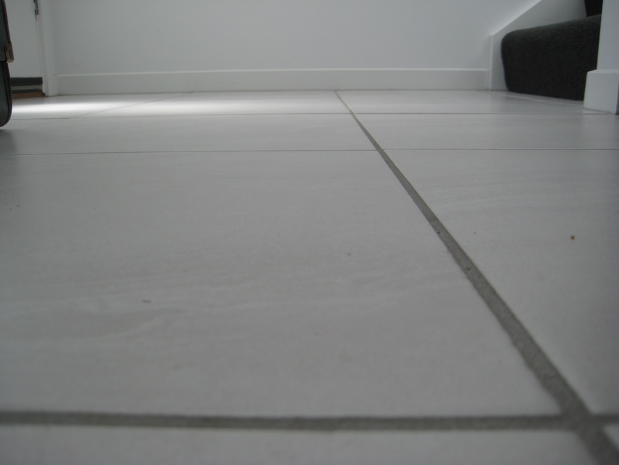 Floor tiling inspected for level and neatness